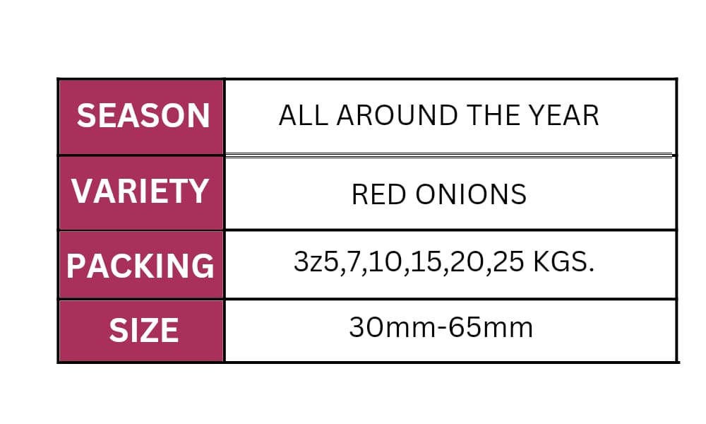 DELUXE Red Onions are from fresh crops of current season, we are exporting this high quality clean Red Onions, available in variable sizes from 40mm to 70mm & more. We are ranked on top by offering the best quality of Red Onions, which is known for its remarkable finish and quality